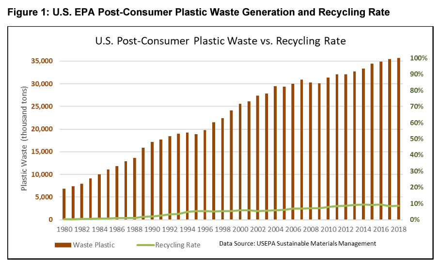Virgin plastic is any plastic “produced directly from the raw materials of petroleum or natural gas that has never been used or processed before.” Decreasing the use of virgin plastic is happening concurrently with an overall increase in plastic usage.