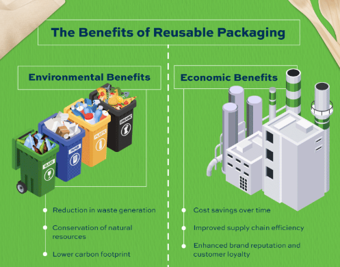 One option for businesses is reusable packaging and a commitment to the circular economy. In a circular economy, plastic remains in the economy and out of the environment. There are numerous ways to reuse plastic if it must be used, including maintenance, refurbishment, or remanufacturing.