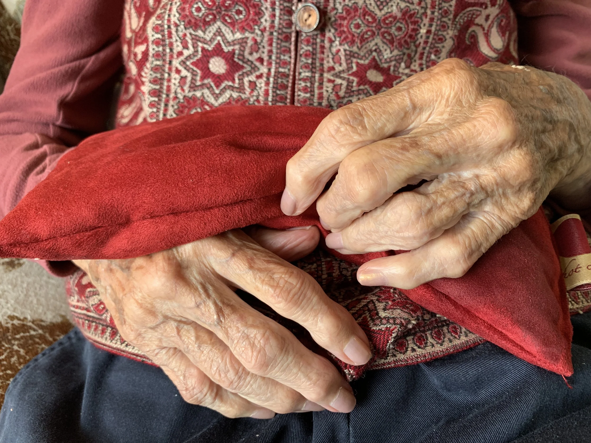 The pillows are full of sustainable cherry pits from Michigan’s prize Montmorency cherries and saved from going to the landfill.